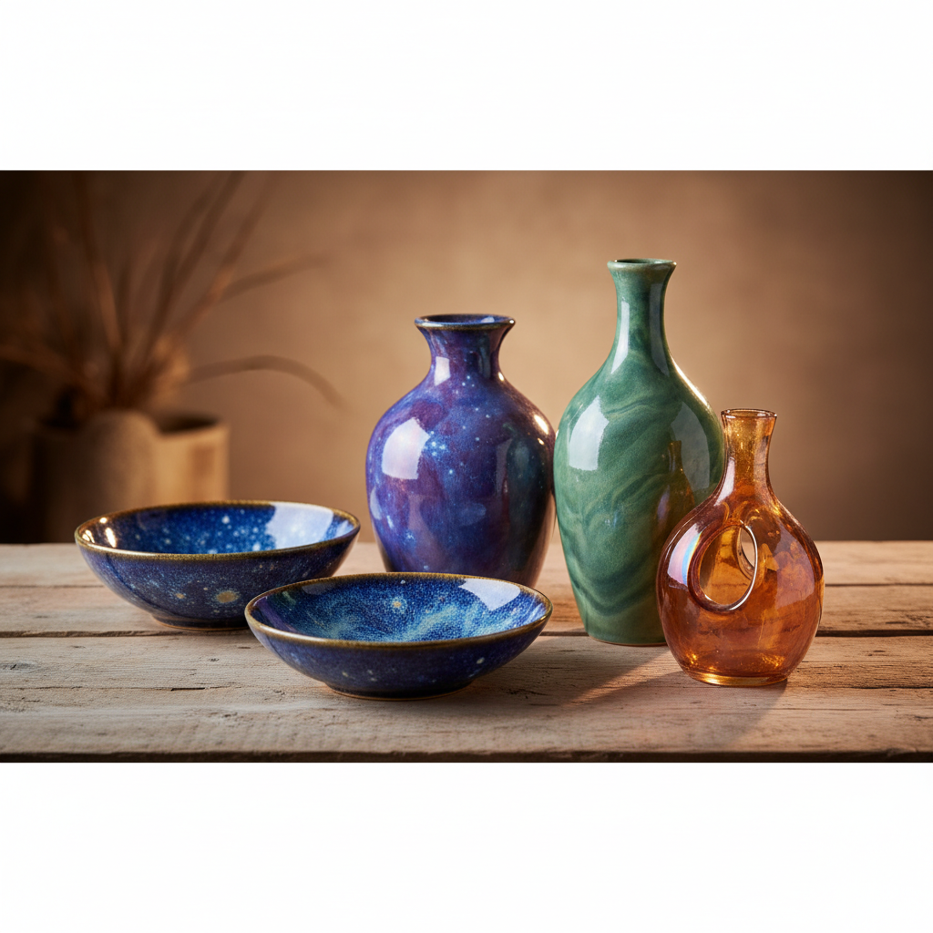 Veja peças cerâmicas reais simuladas com esmaltes de fabricantes parceiros.